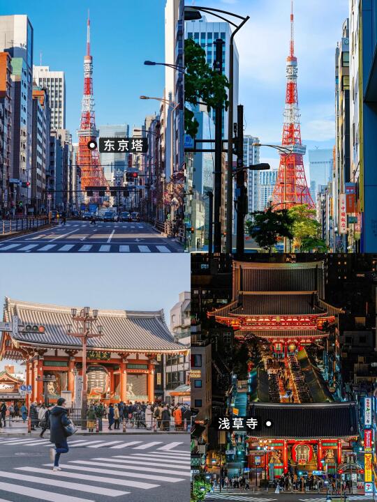 秋叶原(手办😎云集,巨大的招牌都是二次元画风)→浅草寺(签特别灵,去求个姻缘吧)→东京塔→涩谷→黄昏一定要去涩谷sky看一场东京日落🌇银座(各种奢侈品/潮牌应有尽有)→新宿(吃喝玩乐的街区,夜景很好拍)