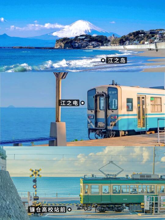 镰仓小町通(感受小城的慢生活)→镰仓高校前(打卡《灌篮🏀高手》动漫里的场景)→江之电体验(随后搭乘江之岛电车前往江之岛,漫步感受夏日🌞海风)