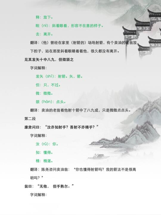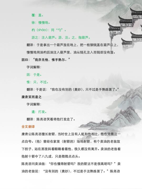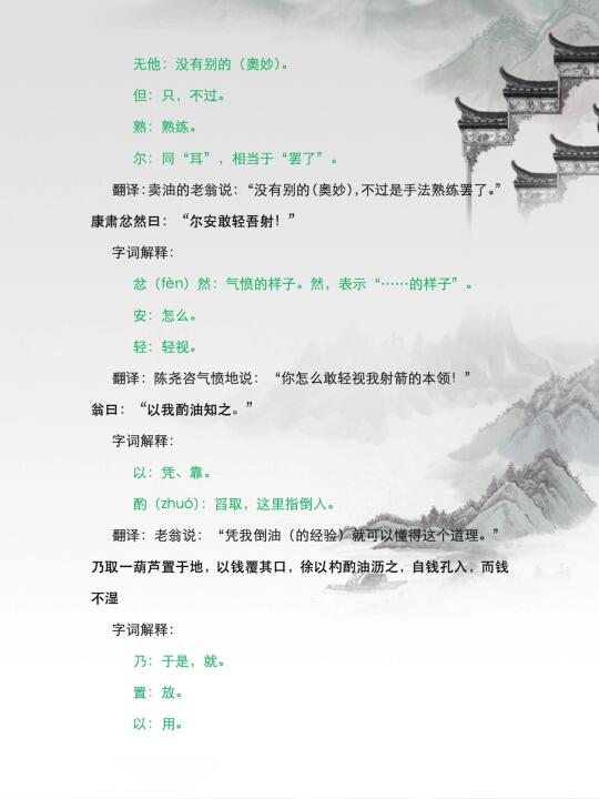 速记《卖油翁》翻译 七年级下册