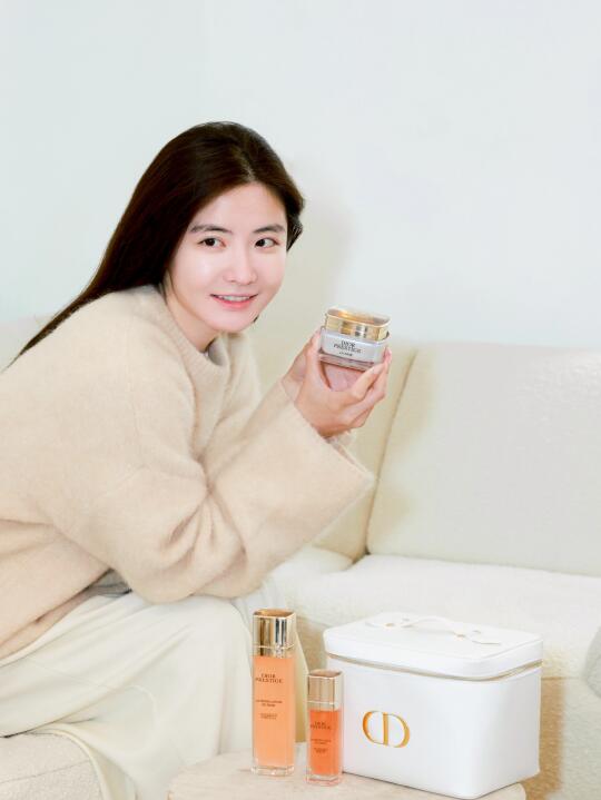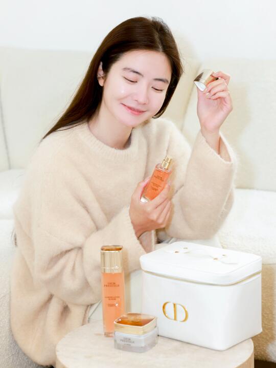 先用迪奥花秘玫瑰气泡水做好打底工作