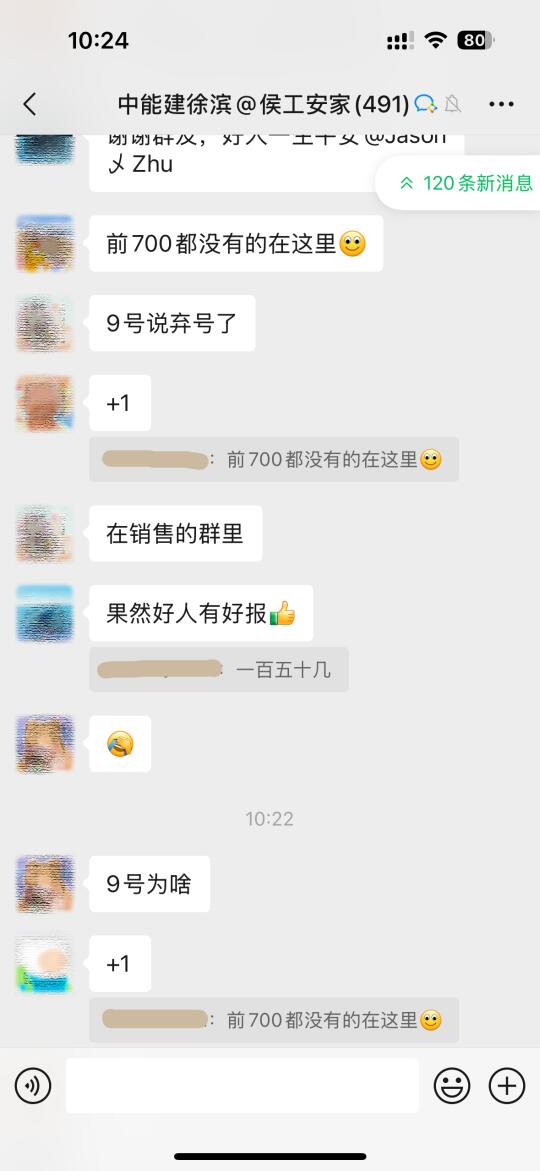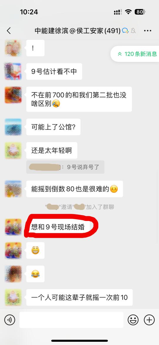 继昨天公馆群有小伙伴摇到1号之后,今天中能建群继续给力,又出了1号选手! 打新几年了,第一次进侯工群就摇到了1号! 另外有人说9号要弃号,也有人表示要跟9号结婚! 9号你愿意吗? 中能建徐滨 能建西岸誉府 上海新房 上海买房 侯工安家