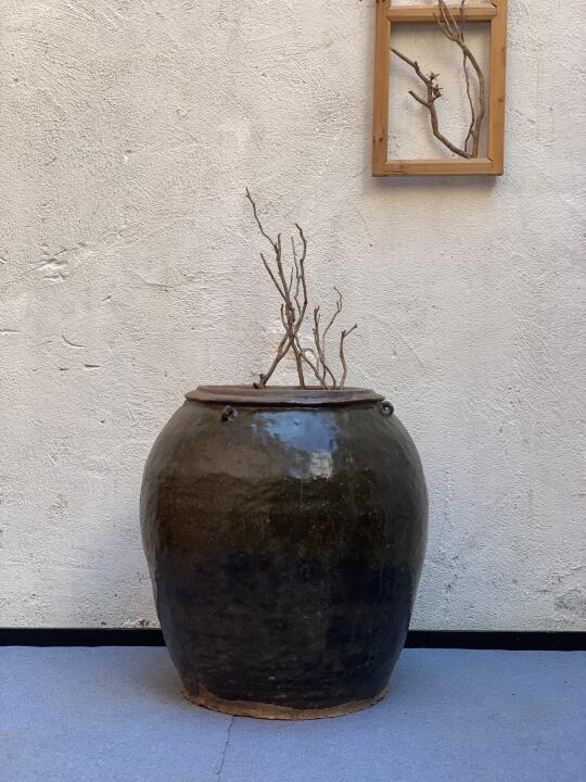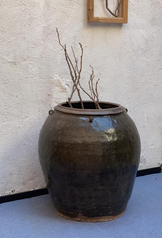 四耳高缸;民宿茶室庭院极简侘寂摆件。