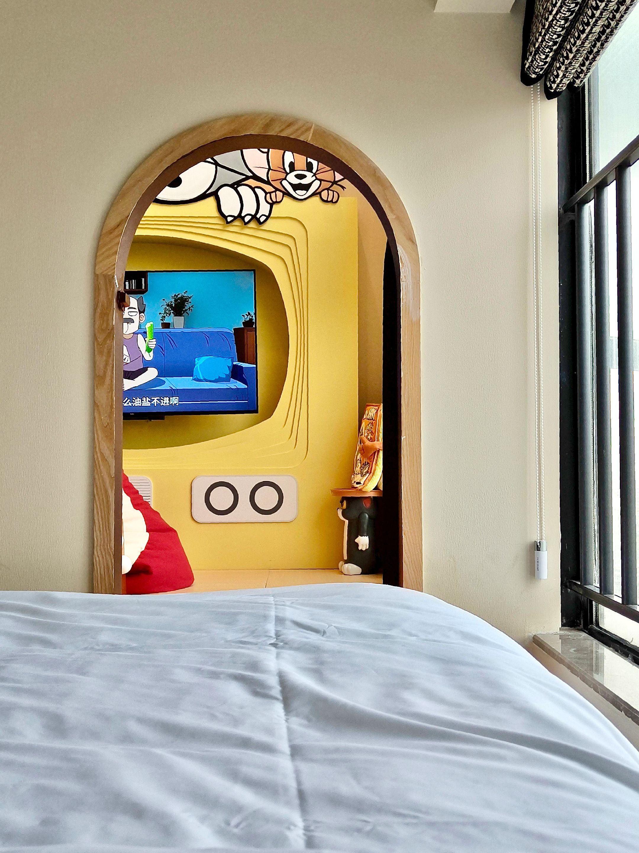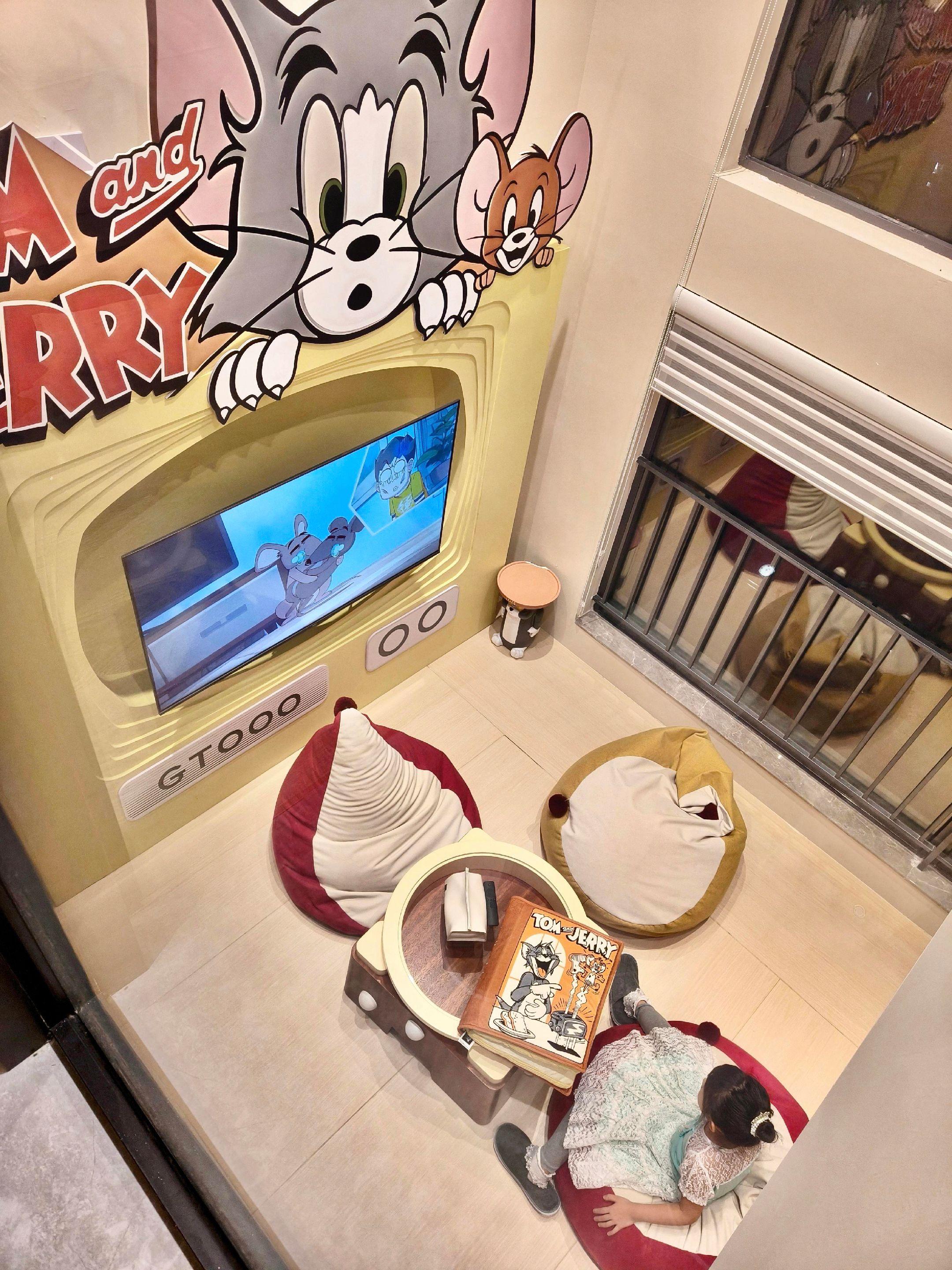 在广州~人均80住进猫和老鼠复式三房🥰。终于带阿妹住进了她念叨半年的猫和老鼠套房!推开门瞬间,她尖叫:“Yo姐,我们住进动画片里了!”😂😂 复.式三房超大空间,三个闺蜜家庭拼团人均才80,性价比炸裂💥! 2⃣️楼活动区成了阿妹舞台,🈶一台好可爱小钢琴,我弹《小星星》,她穿着蓬蓬裙转圈圈,好喜欢这种轻松愉快的气氛🥰。 房间里全是细节彩蛋✔️Tom地毯✔️Jerry抱枕✔️藏在墙角里的“老鼠洞”,连巨型📚也那么可爱🐾! 醉惊喜的是贴心设计✔️厨房煮宵夜✔️巨幕投影看动画✔️闺蜜们躺