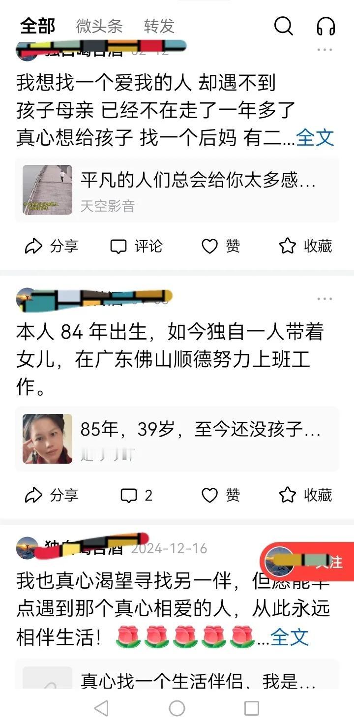 头条功能真是太强大了,有人把它当成了相亲角,一位广东男士独自带着一个女儿,经常在其他女士的微头条后面留言:希望给孩子找个后妈,给自己找个伴侣相亲相爱! 我觉得要是情况属实,真心寻找另一半的,相隔不远,倒可以试着添加微信相处,说不定真能找到呢! 小伙伴们,你们说有没有这种可能?找对象指南