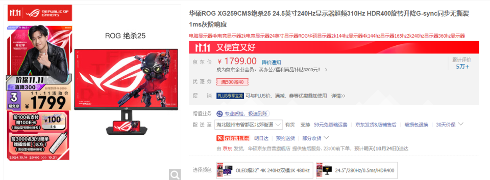 🔺通过华硕京东自营旗舰店的官方页面可以看出,目前活动价格显示双十一到手价仅为1799,前100名支付的还送100E卡,前3000名支付晒单还送插线板,再加上一些额外的优惠券,红包什么的叠加,价格可能还会更低!一千多的价格就能圆梦“败家之眼”,小伙伴儿们还等什么呢!