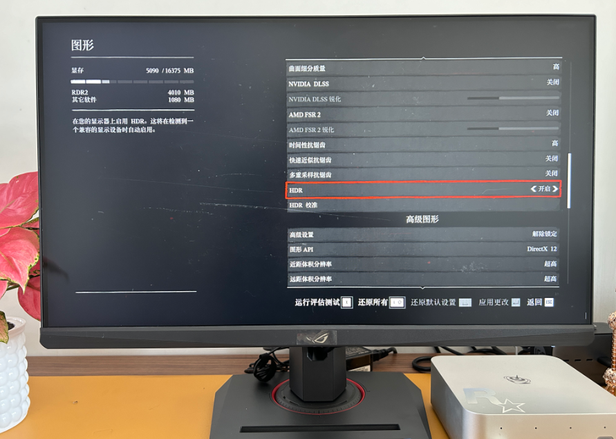 🔺前面说过,它是支持HDR的,HDR不仅对于看图看影视有用,同样的对于支持HDR模式的游戏同样有用,比如说《大表哥2》,就能在设置中原生开启HDR模式。