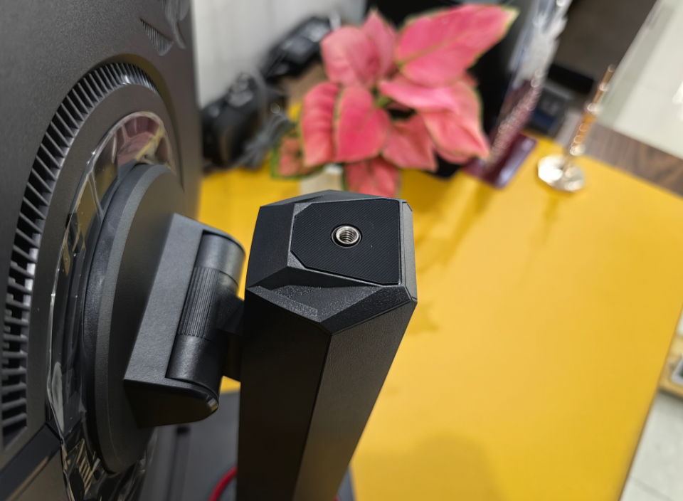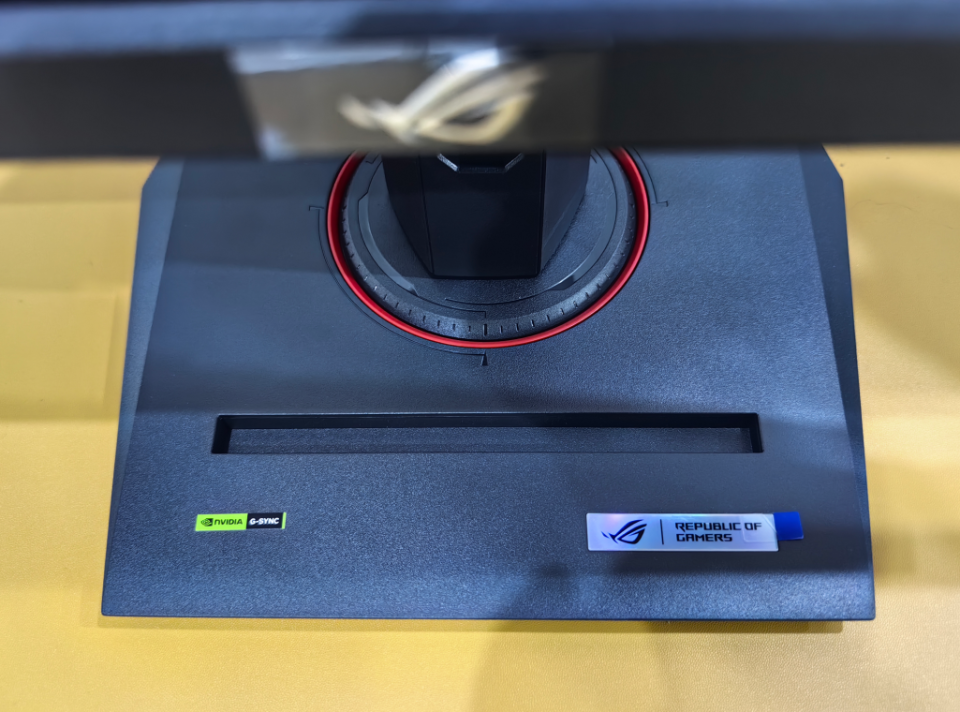 🔺至于它的底座设计ROG也是花了心思的,除了设计有插槽可放手机等设备,底座和支架的转动部分还标注了刻度,方便一些特殊情况下记住最佳位置。