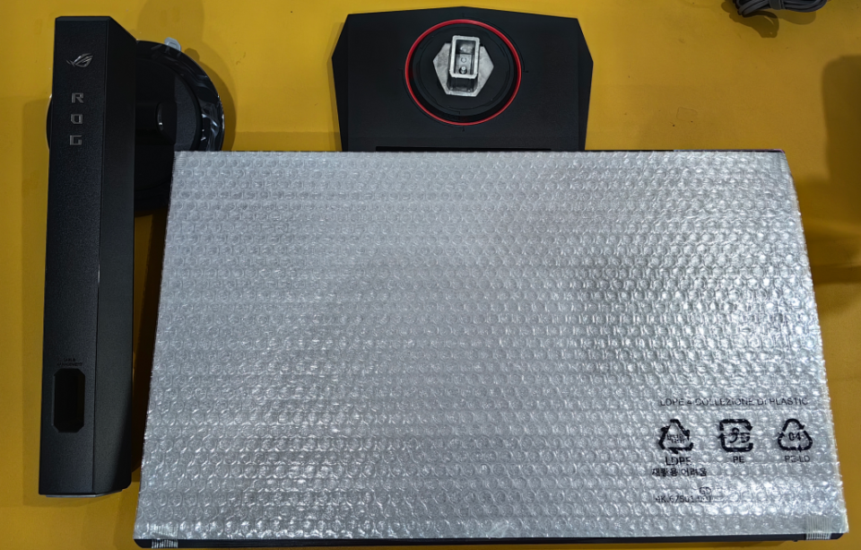 🔺ROG 绝杀 25 显示器采用的是环保牛皮纸包装,看上去挺朴素的,包装正面可读取的信息并不多,能看到ROG(Republic of Gamers)标识,以及显示器尺寸(24.5)。