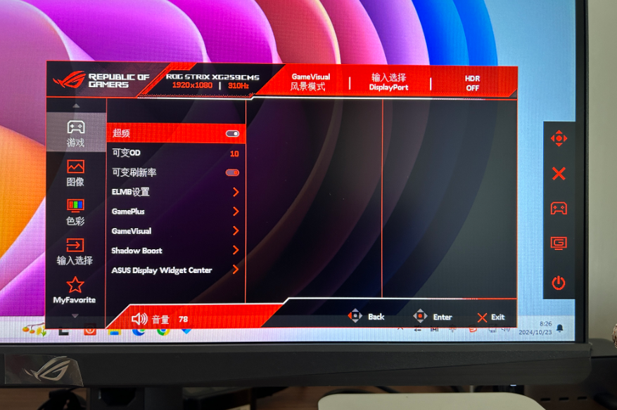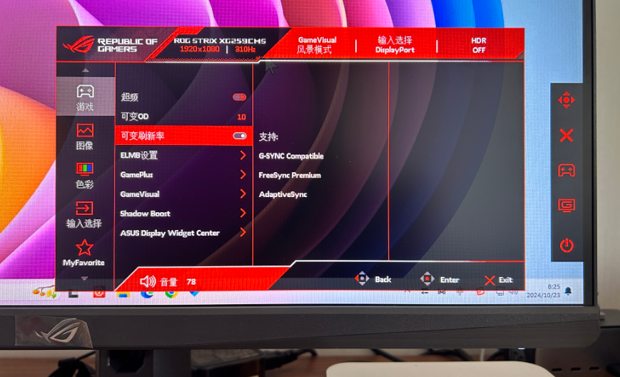 🔺同时在屏幕设置中,我们还可以选择主动开启显示器的HDR功能。这台ROG绝杀25显示器具备HDR400功能,并且还是通过VESA DisplayHDR400认证了的。不过有一说一,它的这个HDR效果还是有的,但是很一般,毕竟它也才是HDR 400,想要体验更极致的HDR高动态对比效果,估计得上MiniLED显示器,可以做到HDR 1000。