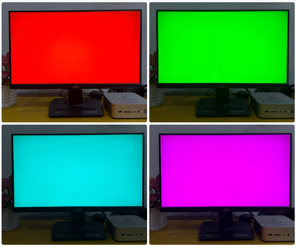 🔺新显示器到手还是需要必要的检测,哪怕它是ROG。通过各种纯色背景可以很好的检测出显示器的色彩均匀性、显示器的亮点、坏点、漏光问题,好在这台显示器各种检测表现均不错,毕竟采用的是顶级的A+屏,符合ROG的一流水准。