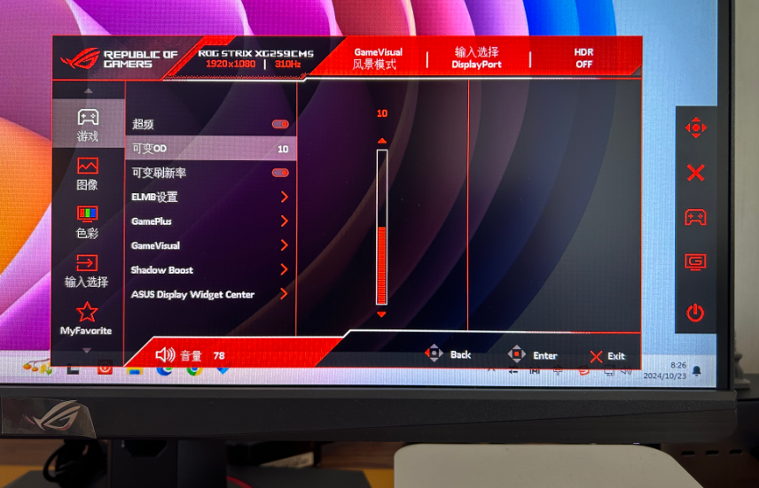 🔺可变OD(OverDrive)简单理解其实就是响应时间加速功能,它允许显示器在帧率波动时动态更改设置,以获得最佳结果。需要说明的是,OD如果设置不当会导致重影或者色彩失真问题,很多其它品牌电竞显示器只是简单的做到了开和关,但ROG这边做到了5级可变OD设置,算是非常人性化的设置了。