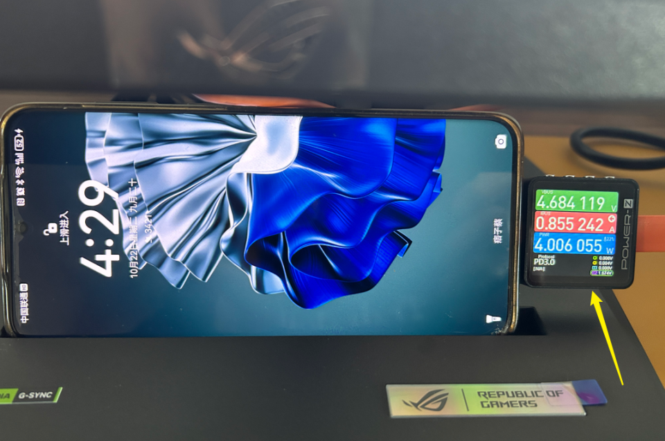 🔺然后还能连着它的C口充电。官方客服说可以达到最高PD15w的功率输出,不过我这里通过POWER-Z 测试了下我这里的华为手机充电功率还不到5W,不过走的协议确实是PD3.0。