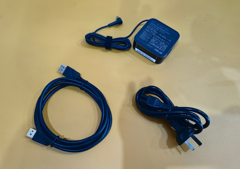 🔺收纳包里面有电源线,电源适配器,以及DisplayPort连接线(咋没有HDMI线?)。