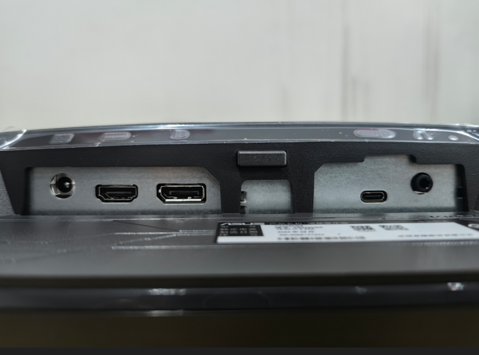 🔺显示器的I/O接口(输入/输出设备接口)不是很多,不过也够用了。从左往右分别为:AC电源插口、1个HDMI接口,1个DP接口、1个支持供电输出的全功能Type-C接口,以及1个3.5mm 音频口。