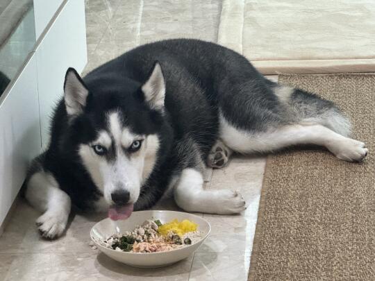 哈哈 本来是趴着吃饭 看我在拍她 马上站起来了 偶像包袱有点重啊[斜眼R][暗中观察R] 福妞:我也素要面子滴[害羞R] PS:最后一图为 吃好饭去床上休息😴 顺便擦个嘴[汗颜R]