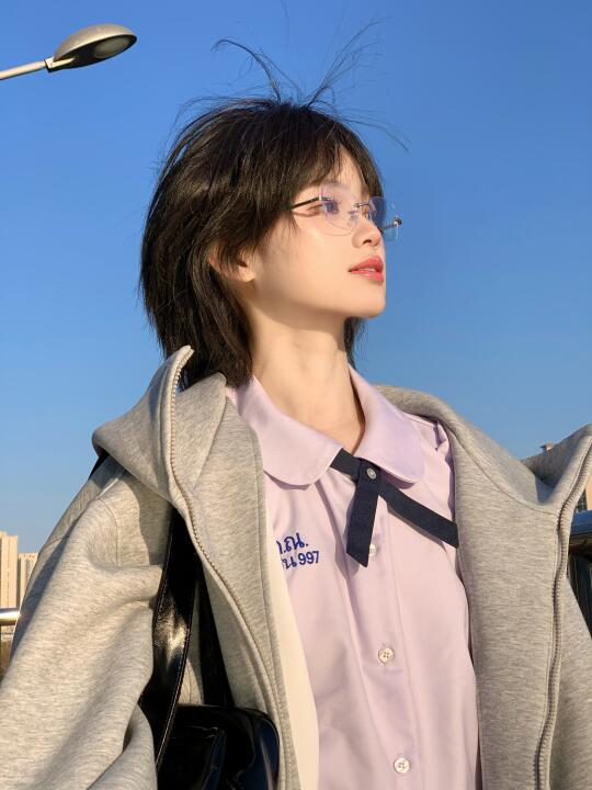 最近爱上了无框眼镜 因为之前看到直井怜超出圈的机场图✈️ 一整个迷住!!!! 立马下单了零度数的眼镜and配了同款近视镜 今天戴着来拍照啦~ 和新剪的短发简直太适配了! 自剪短发两年多了 今年又走进了理发店,没有踩雷!剪出来很漫画的少年感短发,人生清单🧾(发型版)又可以打上一个勾了 北京的大风天能刮走所有的烦心事 走在室外 没有比大风更让人烦的了….