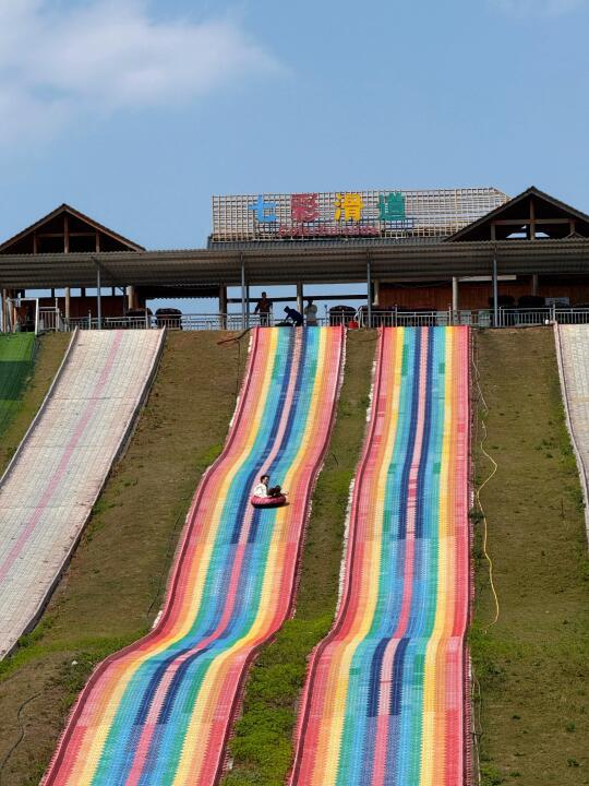 ✔喜欢刺激一点的,不要错过七彩滑坡哦,从高处飞速而下,感受风在耳边呼啸,超好玩🎢