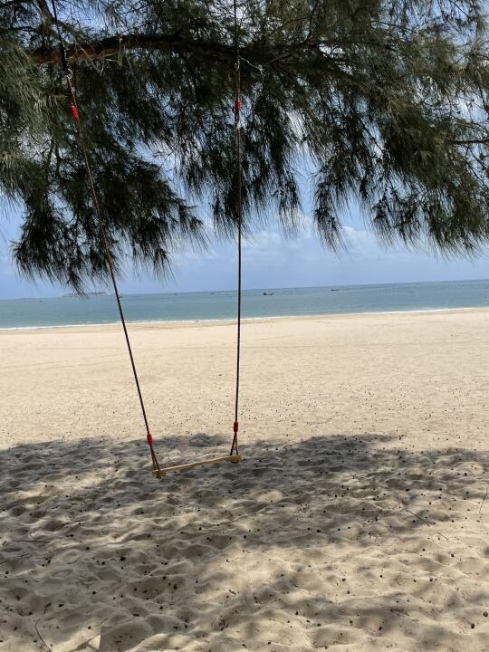 沙滩真的很细软!在树荫底下听海浪也太美好了