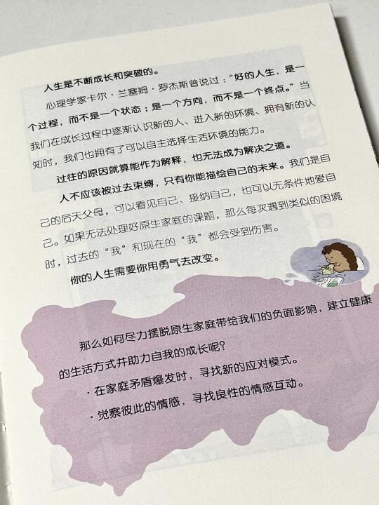 这是一本非常温暖治 愈的心理书,围绕自我认同、情绪健康、人格成长、原生家庭、人际关系等日常生活中的心理困境,给我们带来一场放松疗愈之旅。