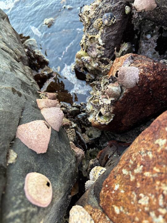 粉紫色的沙滩,藤壶,连石头都是粉紫粉紫色