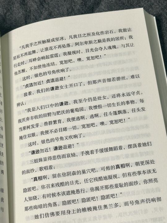 “我找到了伴侣,那就是这片荒野。我是自然的新娘。我会躺在这里。 我找到了比绿更绿的月桂。我的额头将永远享受这凉意。这是荒野的鸟羽—猫头鹰或是夜鹰。我将沉入荒野的梦境,我的手不必再缠 上结婚戒指。”