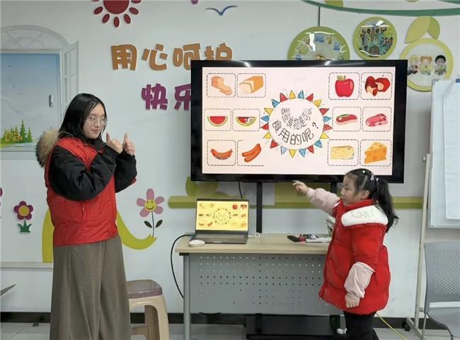 在游戏环节,志愿者们扮演着双重角色。一方面,他们是有条不紊的组织者,俯身轻声讲解游戏规则,确保每个孩子都理解并参与其中,守护课堂互动的有序与温馨。另一方面,他们更是孩子们最贴心的“大伙伴”——全身心投入趣味比拼,和孩子们一同动脑思索、开怀欢笑;轻轻牵起腼腆孩子的小手,用暖心鼓励引导他们大胆融入集体;关注每个孩子的情绪变化,及时给予支持和帮助。