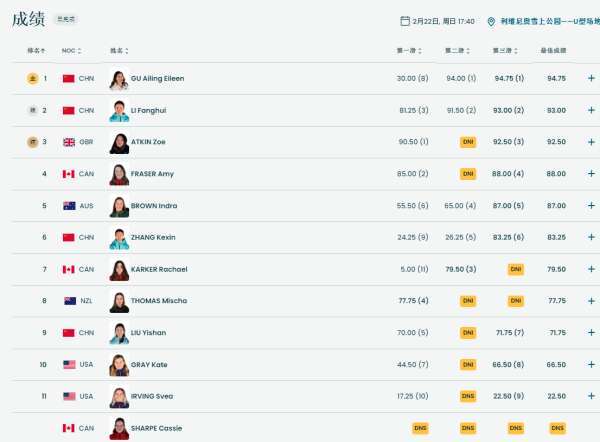 自由式滑雪女子U型场地技巧决赛已经结束。中国选手谷爱凌和李方慧包揽了金银牌。