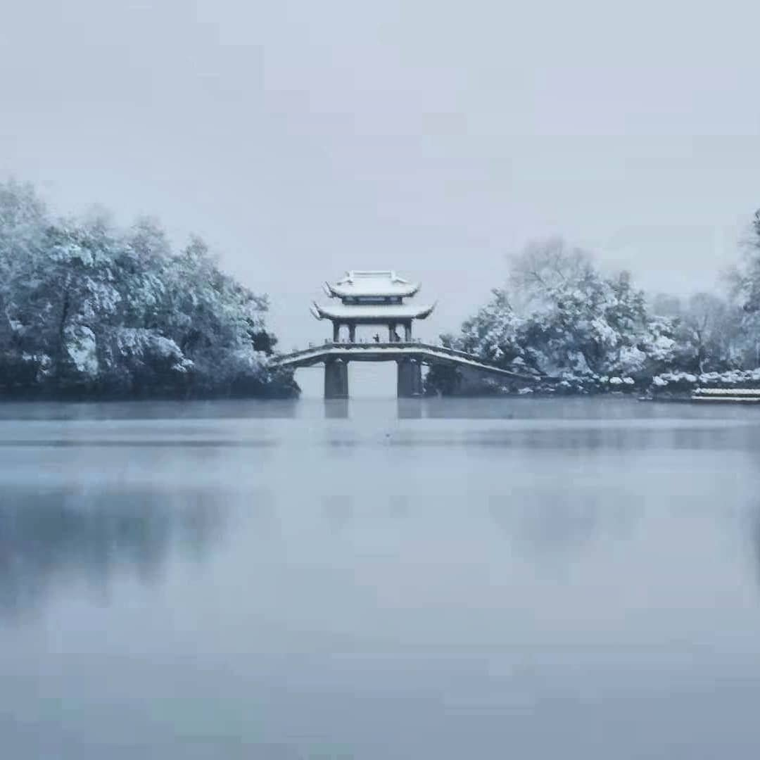 古人说"忽如一夜春风来,千树万树梨花开",放在杭州初雪倒更贴切。西湖十景里,"断桥残雪"本就是冬景C位,往年总因雪小难见"雪残桥不残"的意境,今年初雪够分量,桥身被雪覆盖成蜿蜒的白链,与远处青山相映,倒真有了"玉界琼田三万顷"的辽阔感。灵隐寺的雪更添禅意,古银杏的金黄还未褪尽,便被白雪温柔覆盖,檐角铜铃在风里轻响,连香客的脚步声都放轻了,生怕惊碎这一寺清寂。