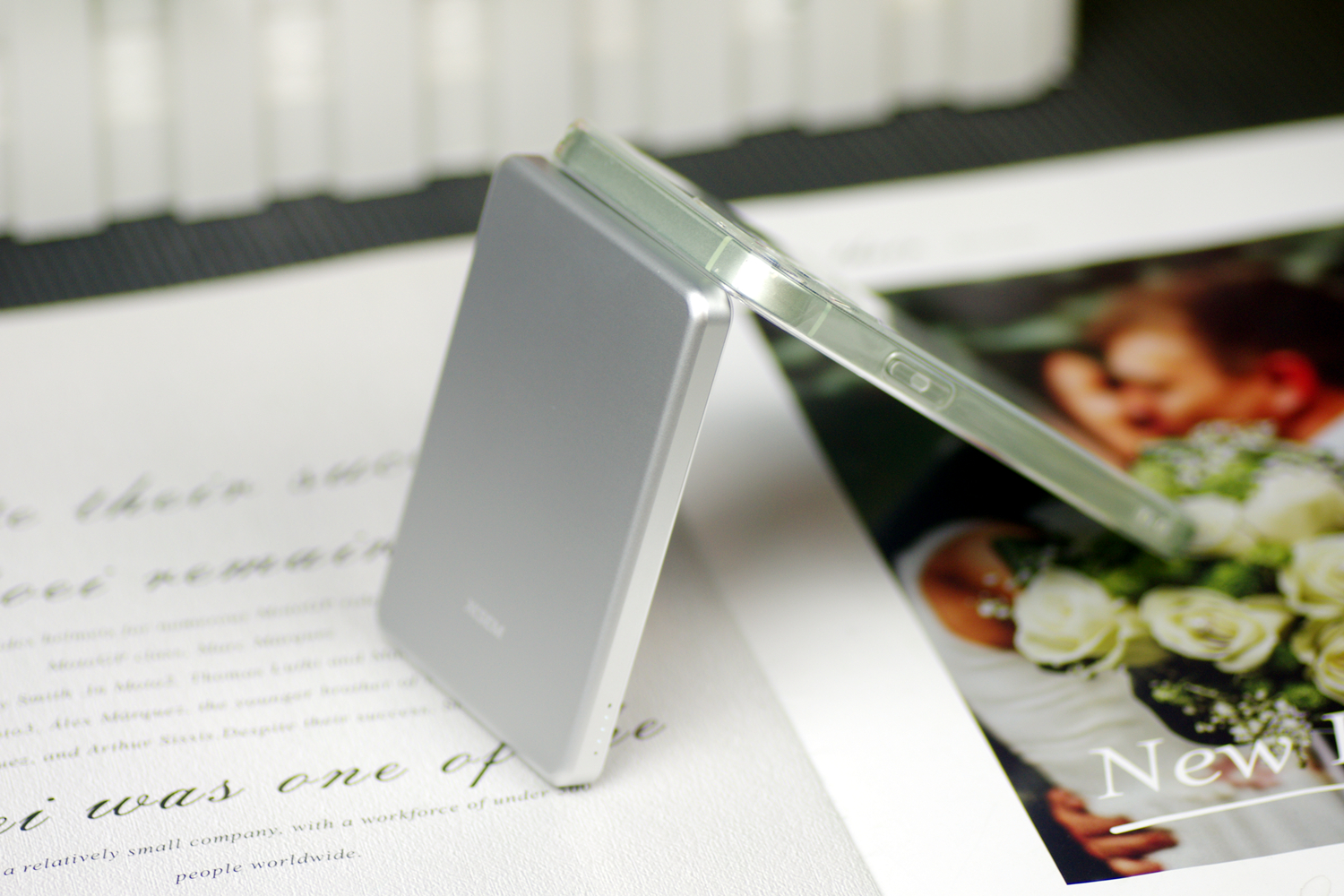 在磁吸方面,很多磁吸充电宝都有个通病:吸得住却充不稳,走路晃一晃就错位,单手操作还容易掉。而西圣PB-Air直接解决了这个问题,内置17颗N52级稀土磁阵,吸附强度高达3500GS,磁力分布均匀,能自动对准无线充线圈中心。