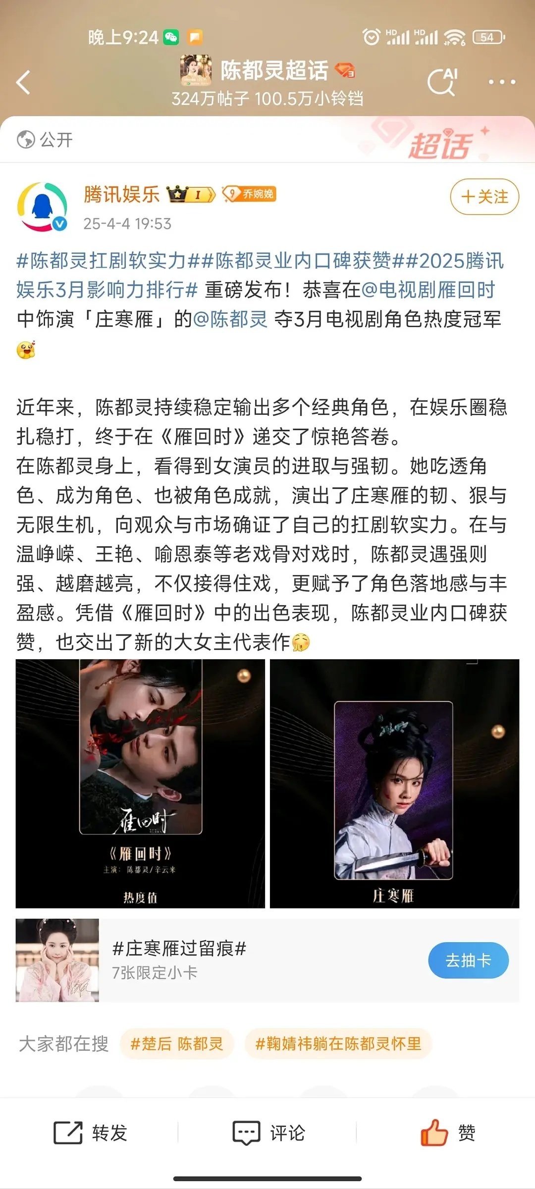 🐧再夸雁回时,认定陈都灵扛剧软实力精,短短几天夸了几次数不清了。二搭,不要放过