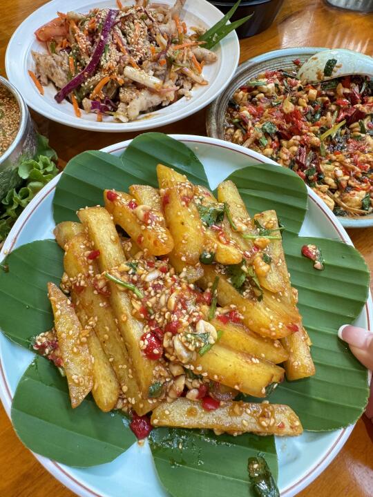 版筑翠园前三!!!不开玩笑!! 开了6年的清真傣味餐厅 被这盘洋芋拿捏🤏🏻的sisi的 洋芋外壳焦香酥脆,里面沙沙的 裹着小米辣香菜蒜泥香迷糊了!!