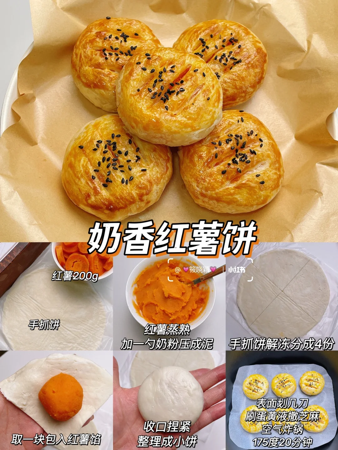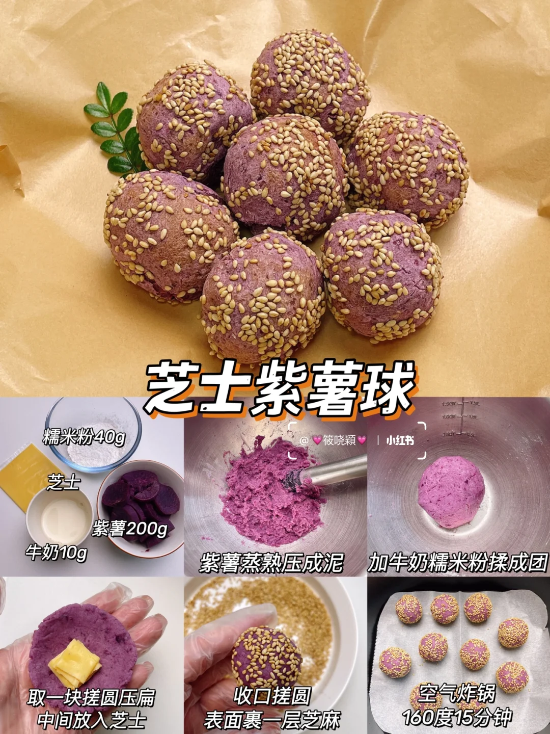 [飞吻R]哈喽!这期给大家分享12种空气炸锅食谱! 自己做非油炸比较健康,热量也比外面卖的低很多,妥妥的哄娃神器,也很适合减脂期馋零食的姐妹! [派对R]做法很简单,一起来试试吧! - ✅芝士烤牛奶 ✅烤薯条 ✅红豆酥 ✅蔓越莓麦芬 ✅葡式蛋挞 ✅芝士紫薯球 ✅迷你火腿可颂 ✅脆皮炸鲜奶 ✅麦乐鸡块 ✅脆皮香蕉酥 ✅紫薯扭扭酥 ✅奶香红薯饼