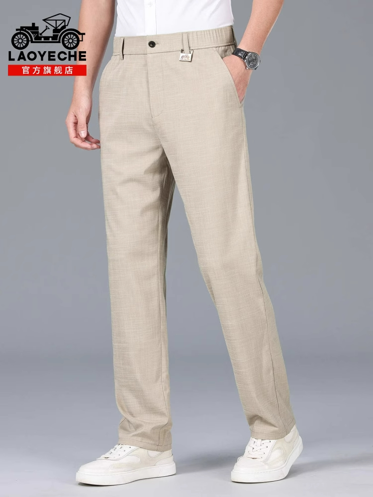 2025新款商务西装裤,高腰黑色显瘦,纯棉弹力舒适,防滑设计,夏季理想选择,中年男士必备良品。