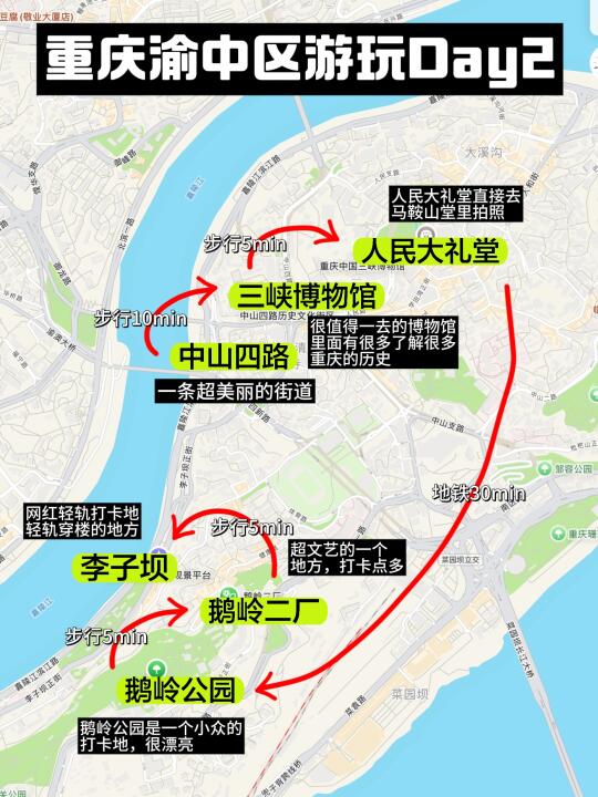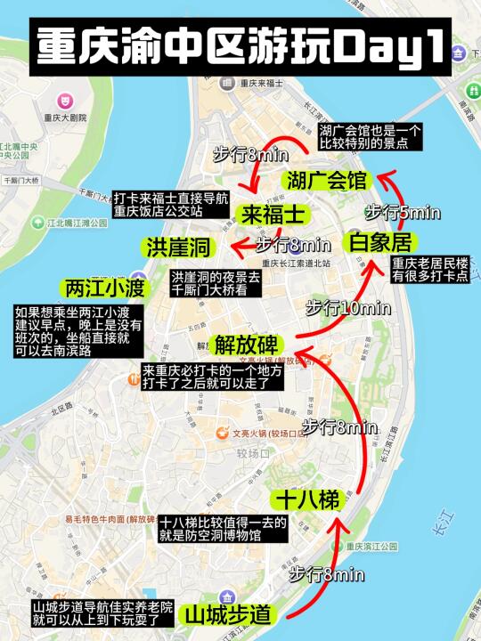 重庆旅游攻略|一张图搞定渝中区景点路线