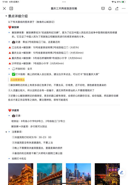 重庆绝大部分的景点都集中在渝中区,但是渝中区的景点其实也很多,个人比较建议分成两天来玩