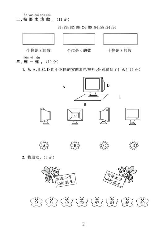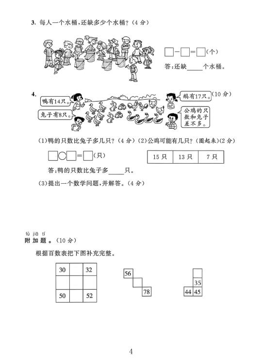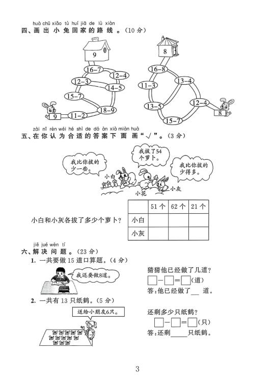 北师大 一年级下册数学 期中考试 期中 试卷 电子版可打印 一年级 🈶word