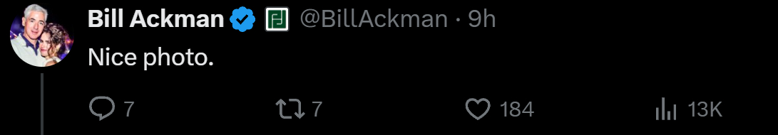 这是当地时间4月6日一名网友在美国亿万富翁比尔·阿克曼X账号下发布的评论文字,同时该网友附带了一张由AI生成的对应图片。