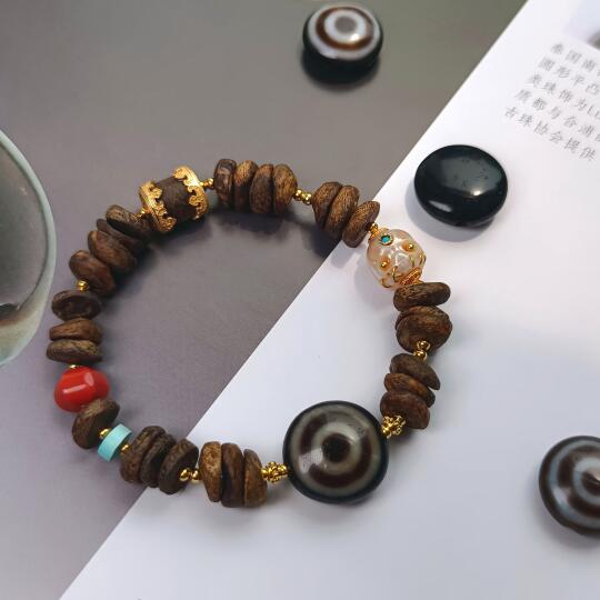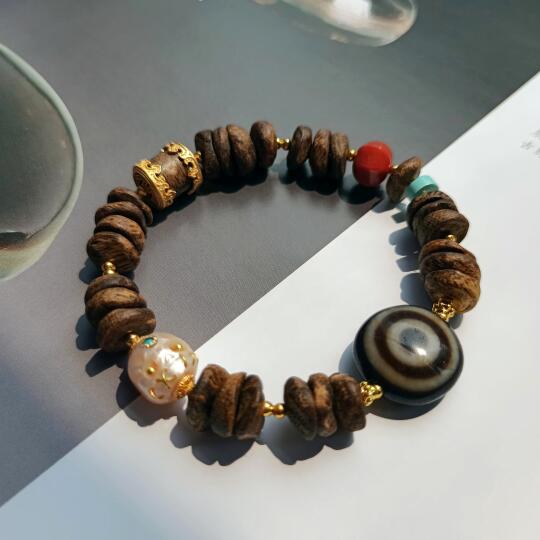 台湾天珠界的前辈杨老先生的手工作品,羊板眼天珠一目照乾坤。 本来是用黄金镶嵌成戒指的[笑哭R][笑哭R][笑哭R]今年黄金涨得太诱人了,我们把它拆了卖了。 剩下的裸珠,用来跟沉香以及珍珠搭配成多宝手链。