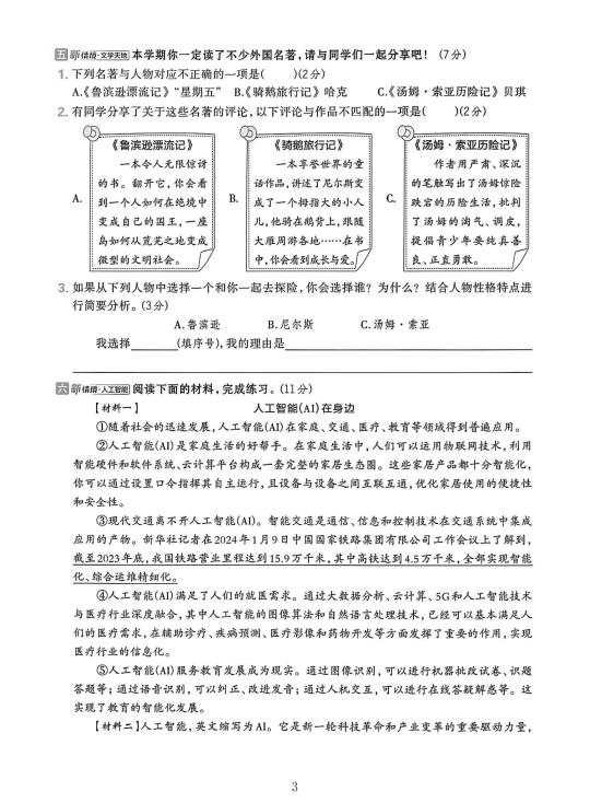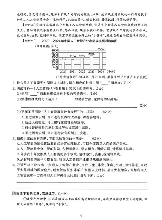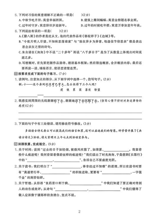 人教版 六年级下册语文 期中考试 期中 试卷 电子版可打印 六年级