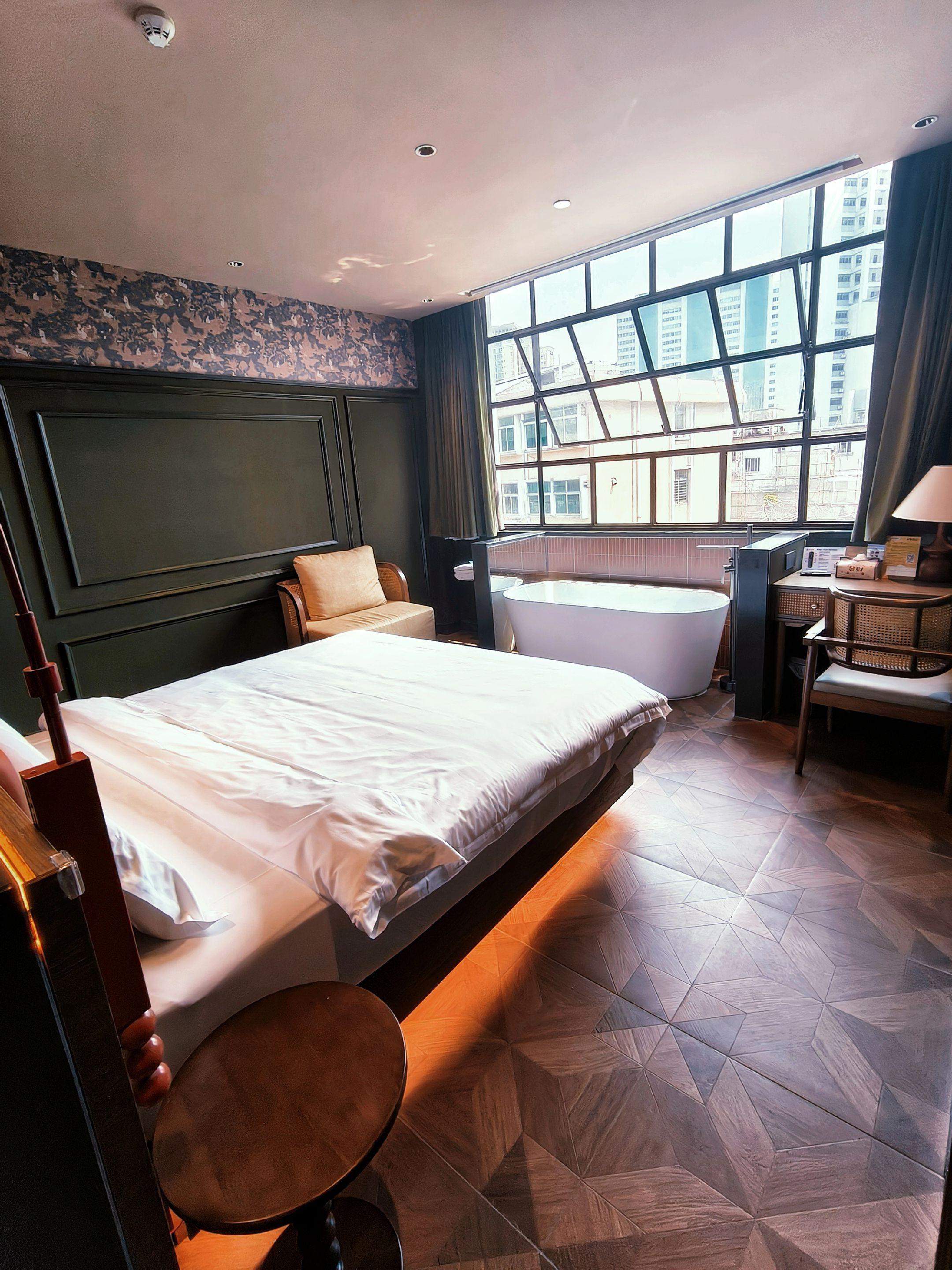 挖到天河CBD旁的宝藏美宿!凯科榕合院1栋的 超时光美宿。 推窗即见传统红墙与玻璃幕墙碰撞,工业风loft配巨幕投影,人均150+躺进艺术现场🎨