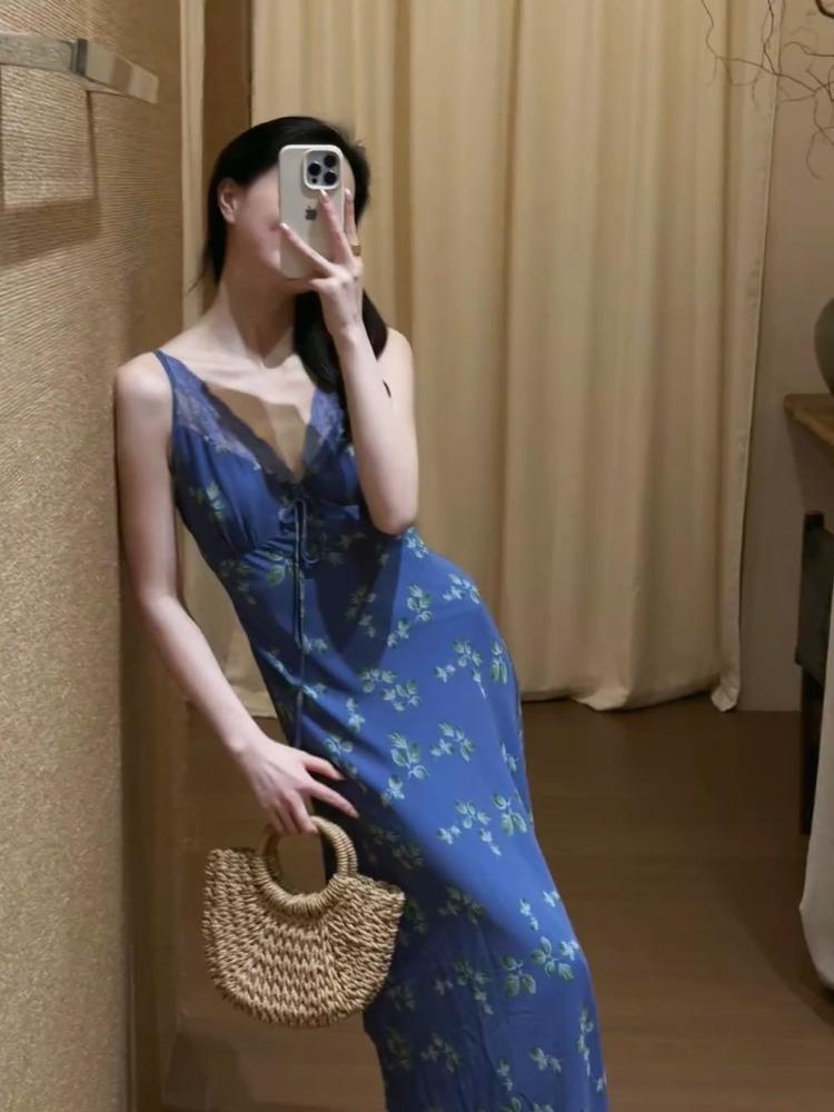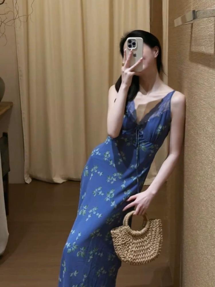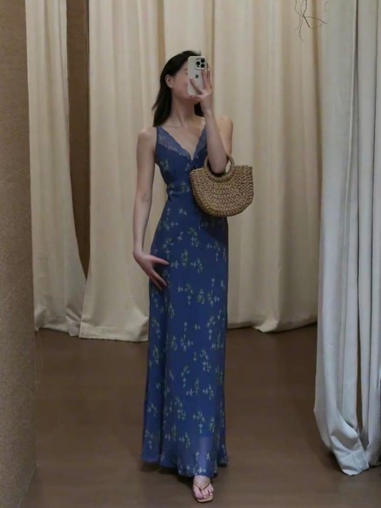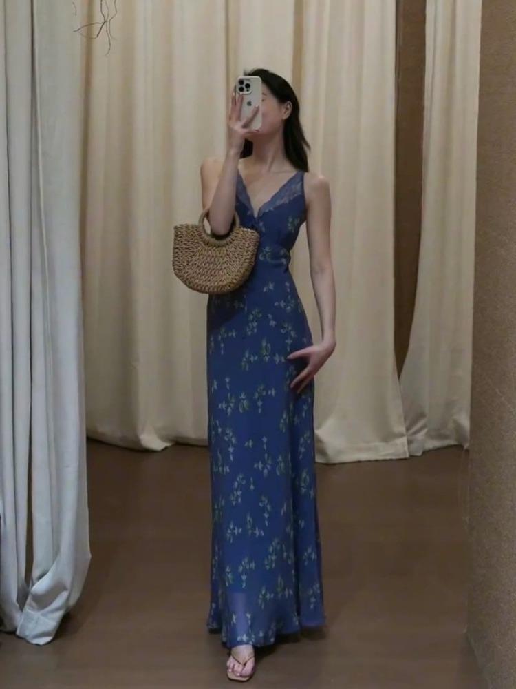 【2025新款】多巴胺蓝碎花长裙,高级感爆棚,尽显优雅气质,夏日必备!