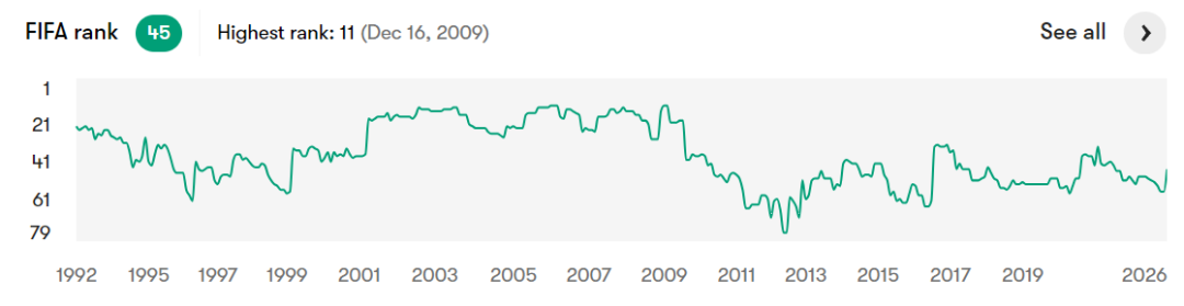 进攻端张玉宁作为支点,身边韦世豪、王钰栋等球员缺乏单兵突破能力,反击多依赖长传找张玉宁,进攻效率低下。被动局面下,只能采取密集防守,全场控球率预计不足40%,反击机会寥寥,难以威胁喀麦隆球门。