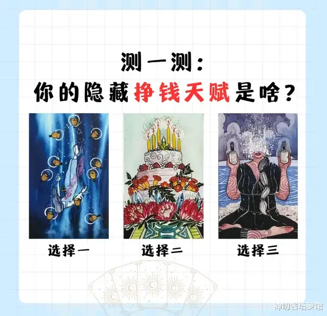 规则:默念问题,“自己隐藏挣钱天赋是啥?”从下面三张牌中选一张~选好后下翻查看答案哟~~