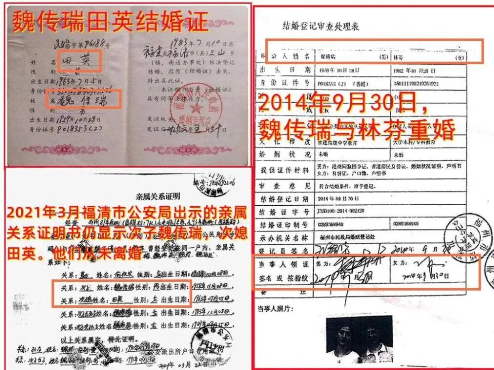 根据爆料,2014年9月,魏传瑞与其秘书林芬秘密结婚。直到2016年,原配发妻田英方才知晓。据悉,林芬仅比魏传瑞与原配发妻田英所生大女儿年长一岁。