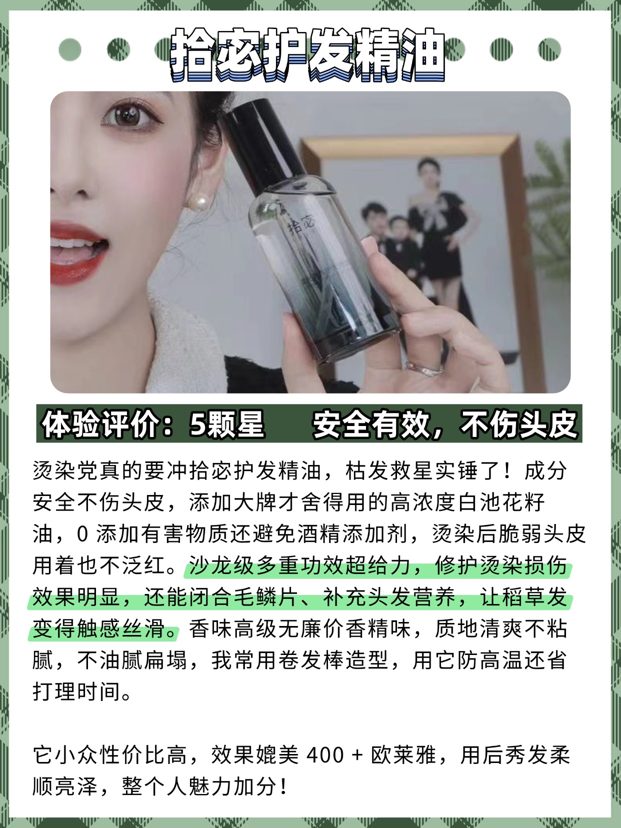 最近刷直播间,总看到有人问,拾宓护发精油怎么样?还有人问,护发精油有必要买贵的吗?首先跟大家说,不管是直播间推荐的,还是市面上其他牌子,我做测评只看真实表现,不看宣传话术,这款精油的具体表现,后续测评会详细说,不提前夸也不提前踩。然后重点说大家最关心的价格问题,很多人觉得贵的护发精油一定好用,其实真不是这样!护发精油的核心是成分和配方,不是价格,平价精油里也有成分安全、修护效果好的,贵价精油也有不适合自己发质的,我测评过很多款,有几十块的平价款,也有几百块的贵价款,发现只要成分靠谱、用量得当,平价款也能达到不错的修护效果,没必要盲目追求贵价。下面是我总结的一些护发精油选购注意事项,看这篇就够了,干货满满,可以先赞收藏,帮大家精准避坑不浪费钱。