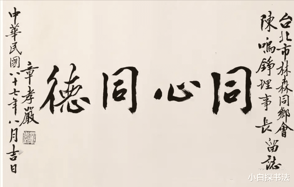 对比蒋经国的书法,蒋孝严的书法,就略逊一筹,在格调上,也是完全不同的,我们也能够看到,在蒋孝严的书法作品中,始终表现一种大开大合的状态,并且,你也会发现,这里的字迹,也有赵体的特点。