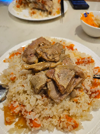 正宗西域风味,肉食爱好者的天堂,无海鲜,香气浓郁,一口解锁新疆特色美食。招牌烤包子,外皮酥脆,内里裹着羊肉丁和洋葱,烤得焦香四溢,羊肉鲜嫩不膻,咸香入味;手抓饭米粒分明,吸满羊油和胡萝卜的香甜,搭配大块羊肉,油润鲜香,不腻不柴,还有新疆酸奶,酸甜解腻,搭配吃刚好,风味独特超解馋。