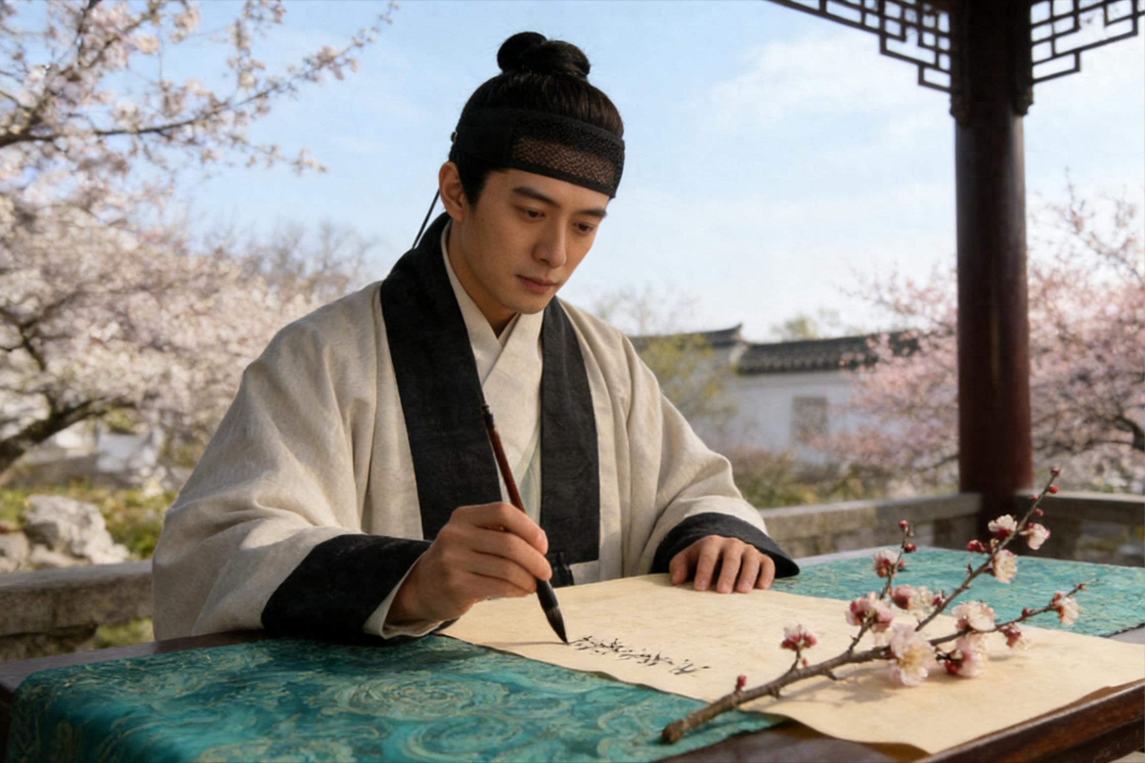转机在“今日相逢”陡然而至。久候的梅枝忽然撞入眼帘,诗人却不急着赞叹,反以“犹摘索”状其态——大约是新绽的梅枝还带着点拘谨的紧致,像未完全舒展的绿绦,惹人忍不住轻折细赏。最妙在结句“翠涛笺上写新诗”:满树青碧的梅枝翻涌如涛,竟成了一方天然诗笺,诗人的灵思亦如泉涌,提笔便是“新诗”。