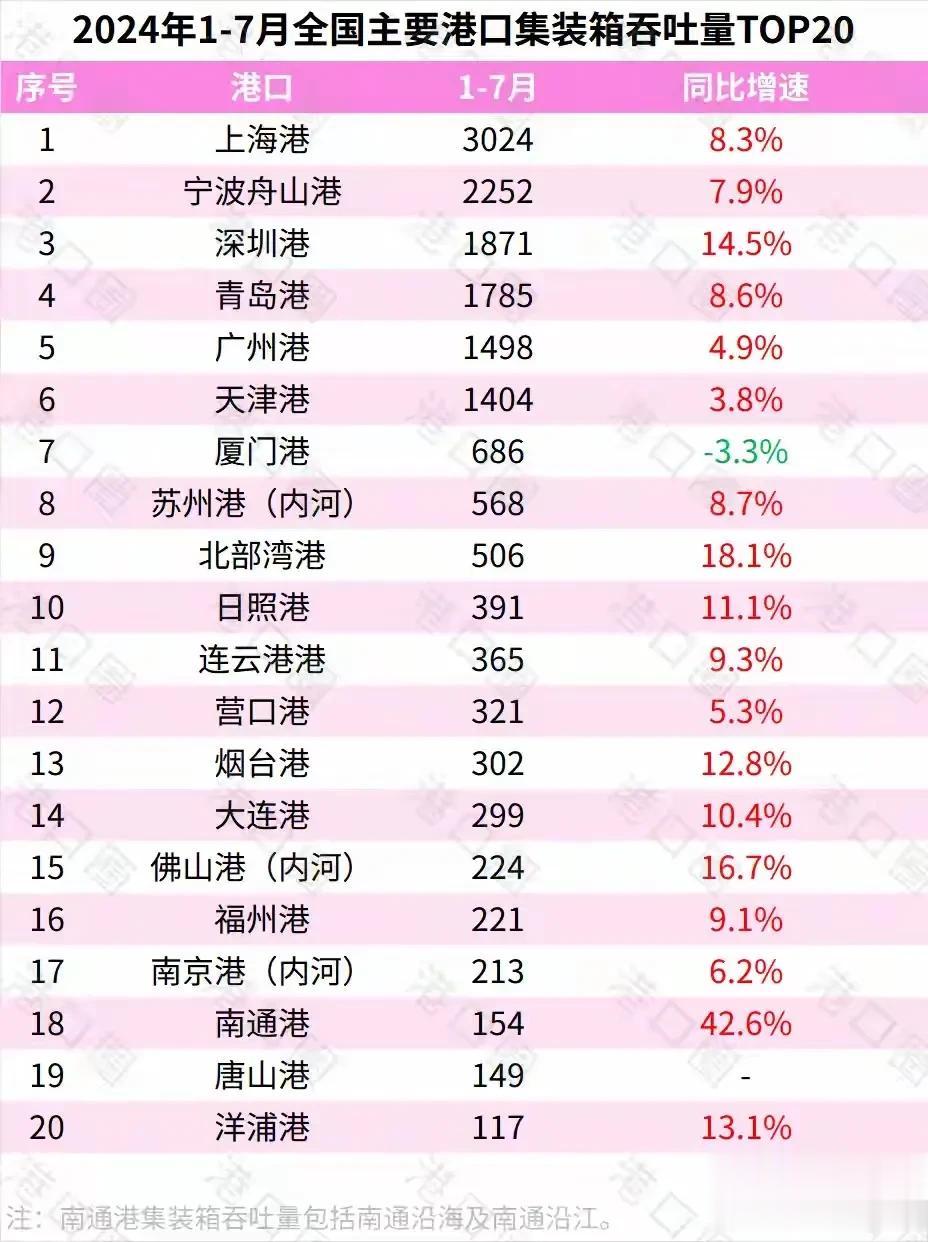 中国集装箱吞吐量最大港口TOP20排名见附图。孰大孰小一看便知。