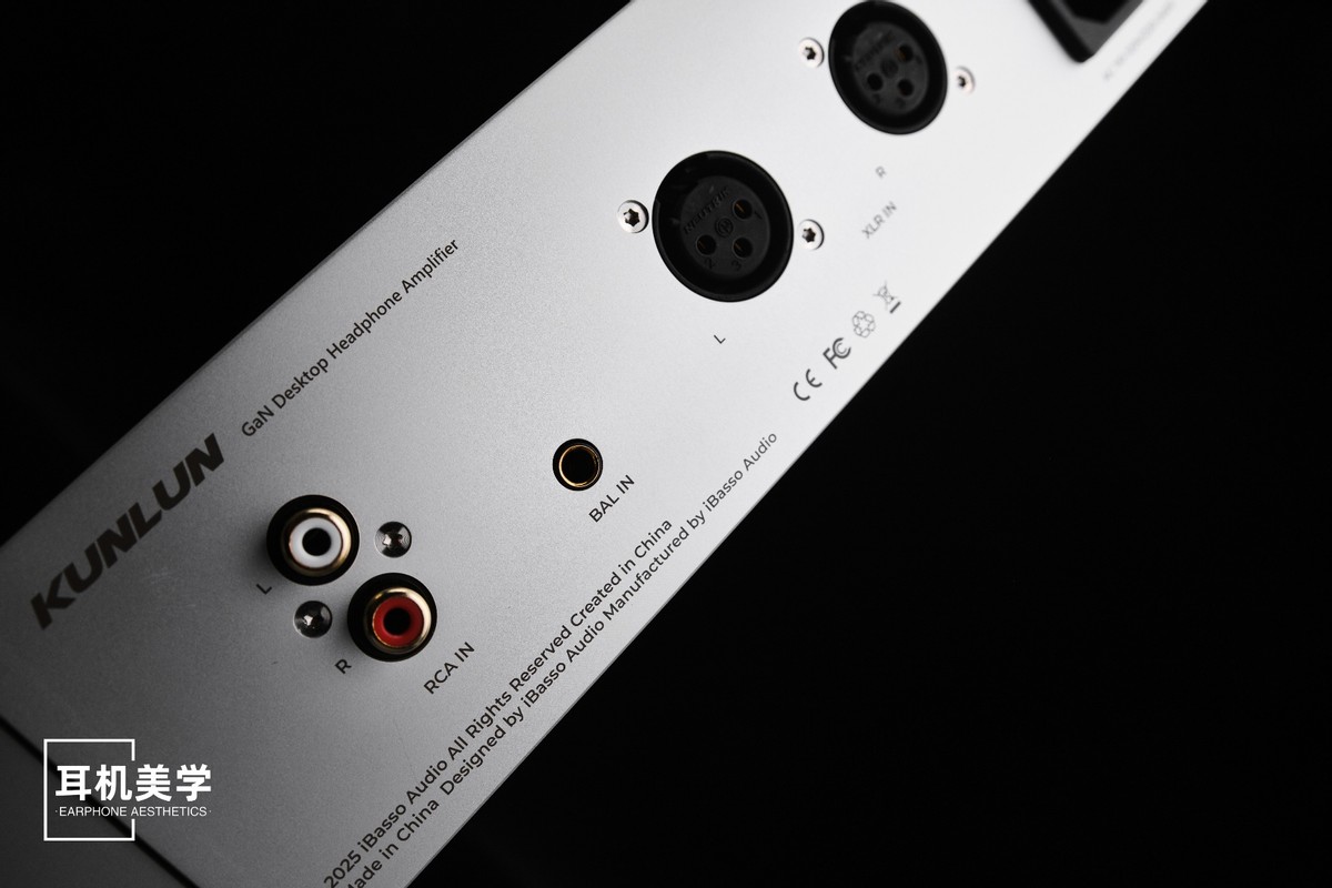 前面板布局清晰,从左至右依次为6.35mm单端、4-pin XLR平衡及4.4mm平衡耳机输出接口。中央的大尺寸音量旋钮阻尼适中,调节手感细腻。右侧则设有三档增益拨杆与电源开关。转至背部,昆仑的输入接口配置齐全,除了常规的XLR平衡与RCA单端之外,还为便携用户预留了一个4.4平衡输入口,对于仅使用3.5mm单端输出的设备,也可通过随机附送的3.5 mm转RCA连接线进行转接。